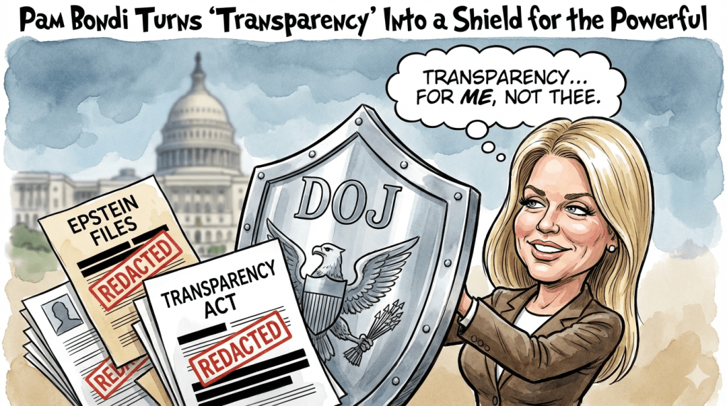 WASHINGTON — During the five‑hour spectacle of the House Judiciary Committee on February 11, 2026, Attorney General Pam Bondi didn’t simply defend the Department of Justice — she fortified it behind a partisan shield thick enough to deflect both victims and facts. What was supposed to be an oversight hearing on the Epstein Files Transparency Act instead became a case study in how a modern bureaucracy can turn “transparency” into a tool for hiding the truth.
