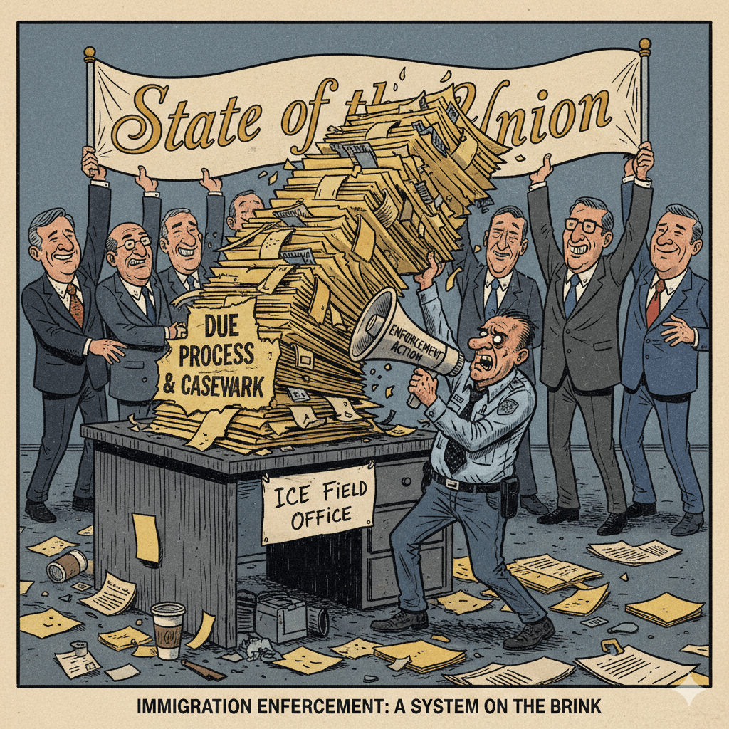 As immigration enforcement faces mounting due‑process failures, Congress has allowed DHS funding to lapse — deepening systemic problems that long predate the State of the Union.